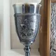 Каждый элемент бокала изготовлен с исключительным вниманием к деталям. Корпус выполнен из латуни, а затем покрыт черненым серебром, придающим ему благородный блеск. Внутренняя поверхность покрыта золотом высшей пробы, подчеркивающим его роскошность.