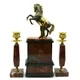 Сердце набора – это элегантные каминные часы, выполненные из натурального карнеол. Они дополнены изящными подсвечниками, также выполненными из карнеола. В качестве основы использован благородный гранит, что придает набору особую структуру и долговечность. Детали, такие как скульптура коня, отлитая из бронзы и позолоченная, подчеркивают статусность и безупречность изделия.