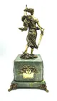 Центральным элементом композиции является статуэтка Фемиды, богини правосудия, воплощенной в детальной и величественной форме. Премиальный механизм часов обеспечивает безупречную точность хода, а элегантный дизайн и основание из высококачественного мрамора придают изделию неповторимый шик.